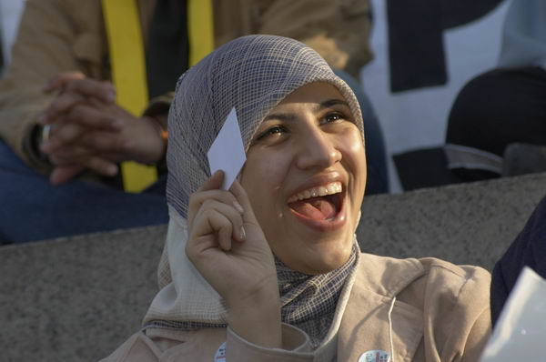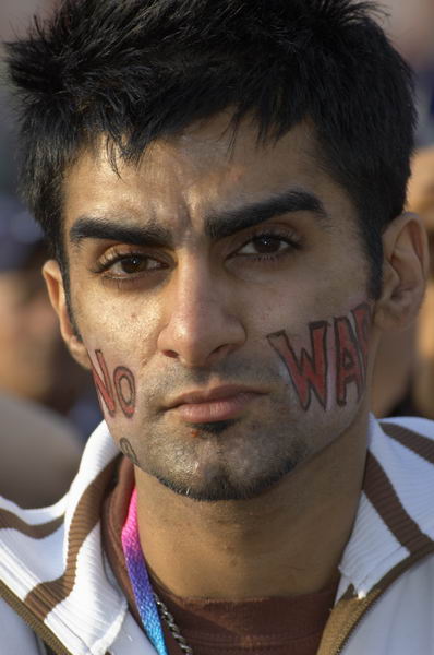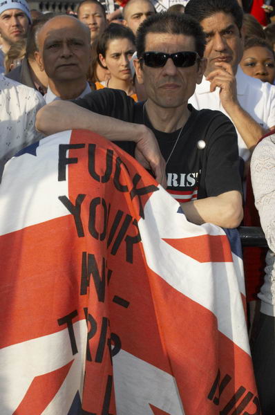 ![]() Resolute faces in the crowd at Trafalgar Square |
