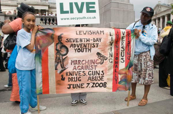 Adventist Youth March against Knifes, Guns & ViolenceTrafalgar Square- Kennington Park, London. Saturday 7 June, 2008