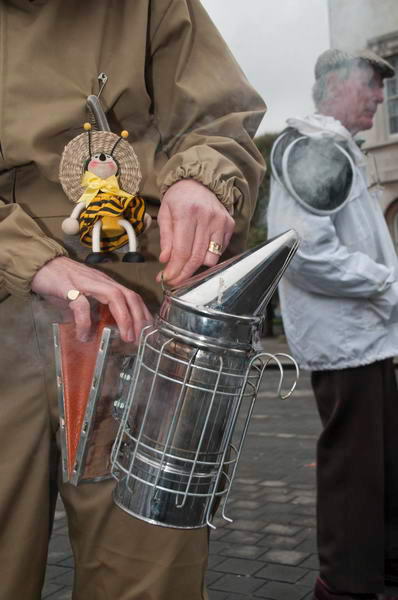 ![]() Older bee-keepers wore smocks and more primitive veils - and some thought the occasional sting was good for the health! |