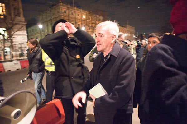John McDonnell speaking opposite Downing St - Phil Thornhill listens at left