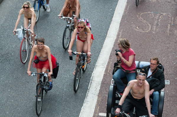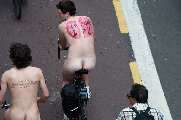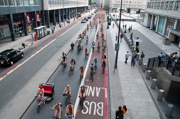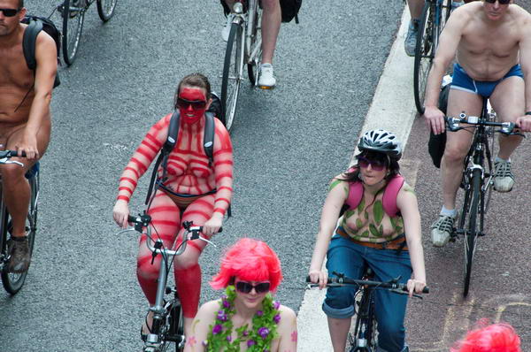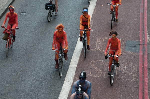 World Naked Bike Ride - LondonWaterloo, London. Sat June 13 2009Please do not link directly to this page. Use the permalink: http://mylondondiary.co.uk/2009/06/jun.htm#wnbr which leads to the start of this story and a warning that these pages contain images of men and women without clothes, and that anyone who might be offended should not view them. If you have come to this page by accident and wish to leave immediately, click here.