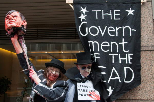 "I want to support the 'New Labour' party in the same way the rope supports the hanged man". With visual aid.