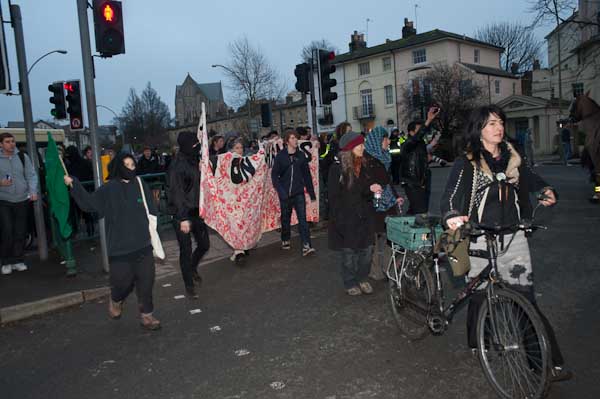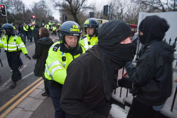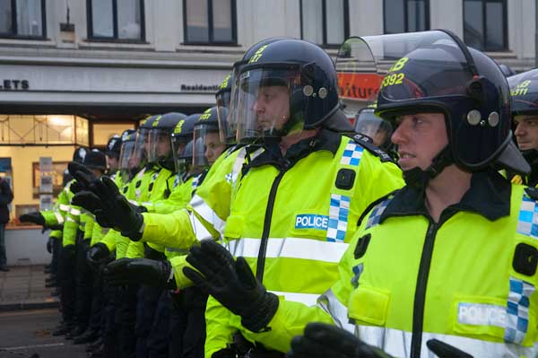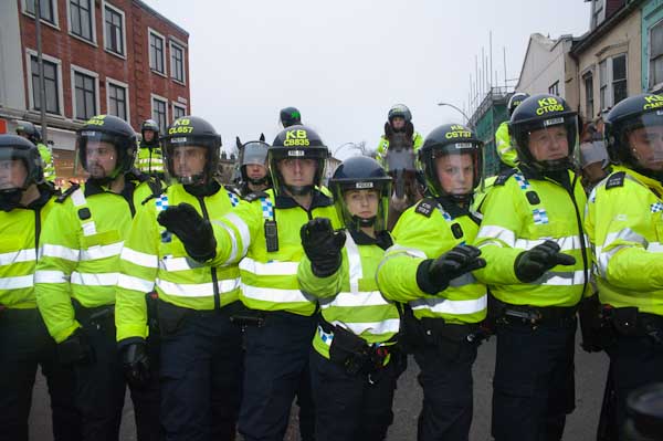 Eventually the police line retreated, but then broke down where the road widened and poeple flooded through