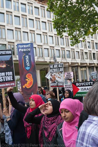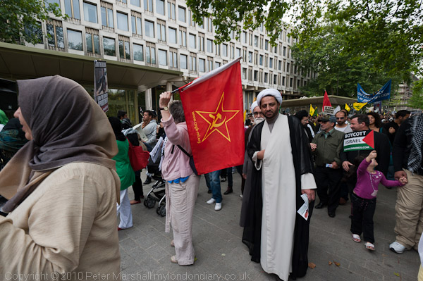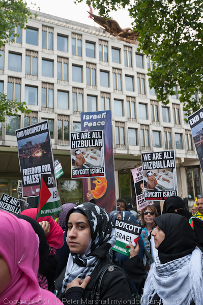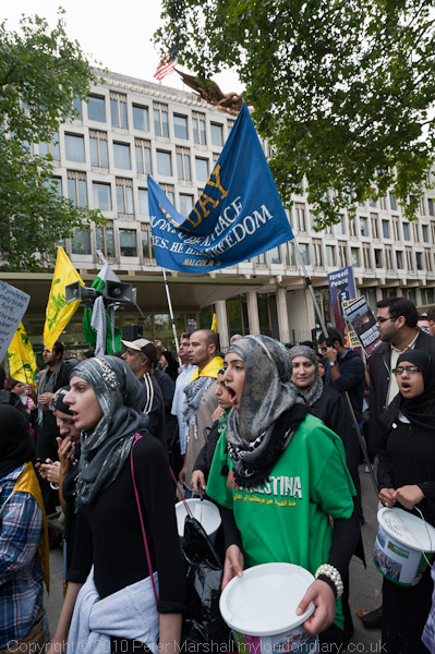 Finally the marchers who had been held back by the police arrived in front of the embassy
