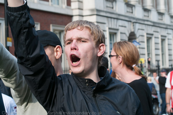 In Grosvenor Square EDL members came to shout at and threaten the press while waiting for the march