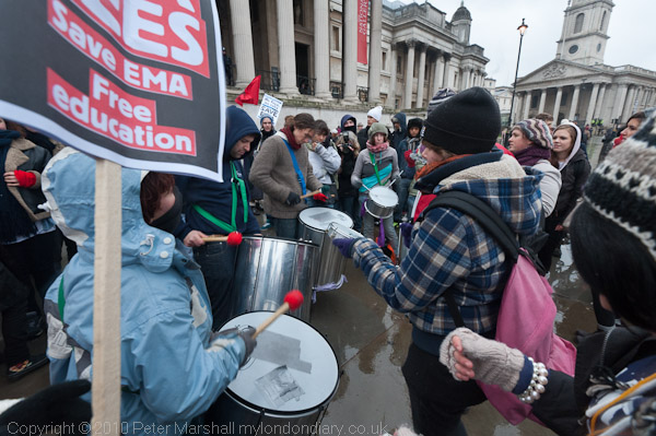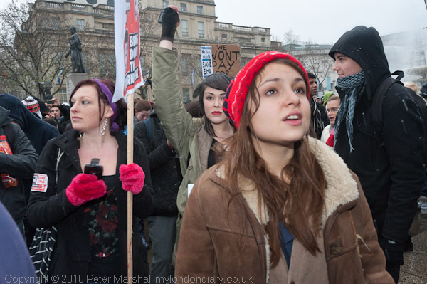 The marchers have arrived back in Trafalgar Square, joining with the others still there