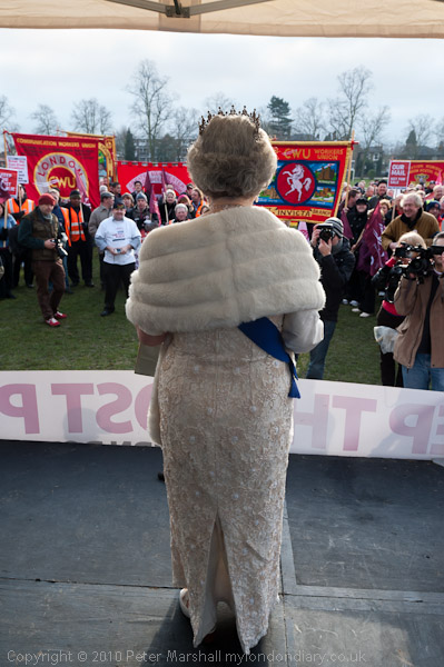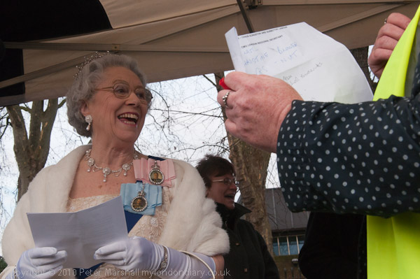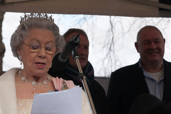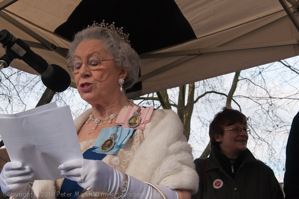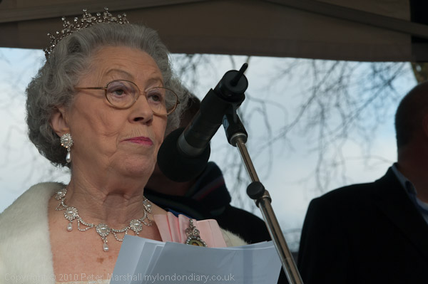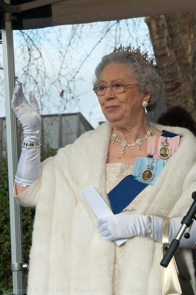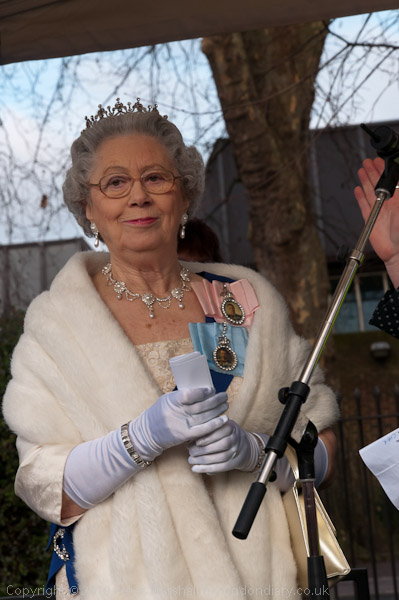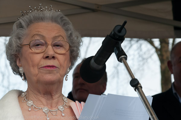 A 'royal visitor' Queen lookalike gives a humourous royal address