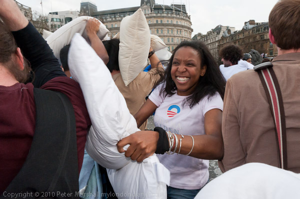 Feathers Fly in Trafalgar Square Pillow Fight