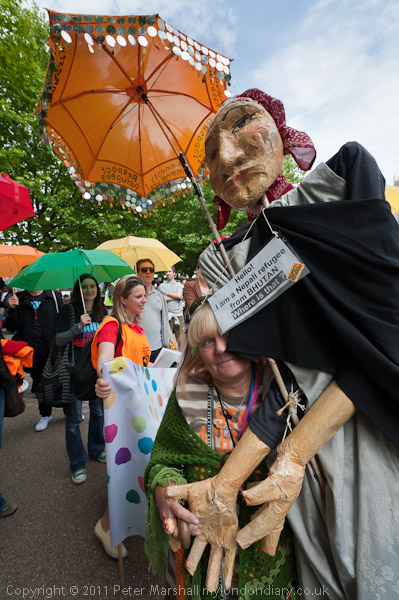 It should have been joined by the Amnesty workshop group that had been making these deocrated umbrellas