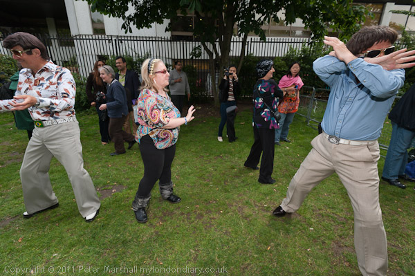There was some music on a stage here, and the Two Elvises and some friends were dancing to it