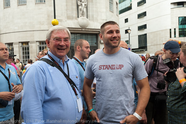 Security lets us close to the celebreties for a second and I photograph Peter Tatchell with his poster and Ken Livingstone