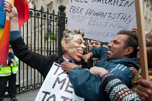 including a man who pretended to strangle 'Tony Blair'