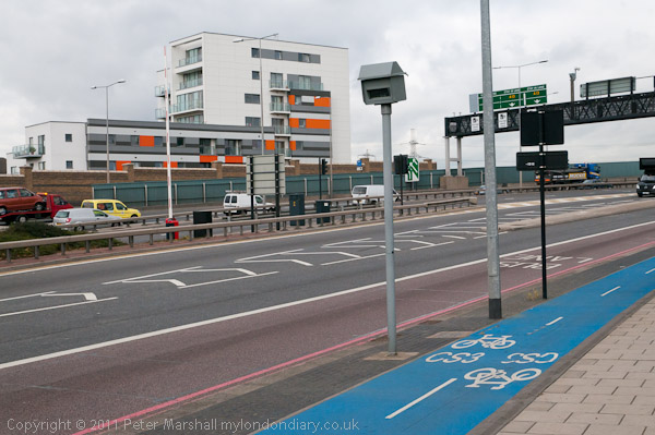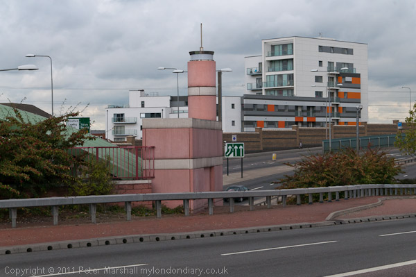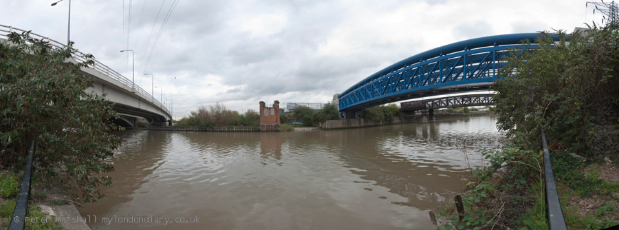 East India Dock Rd bridge, Bow Creek and footbridge