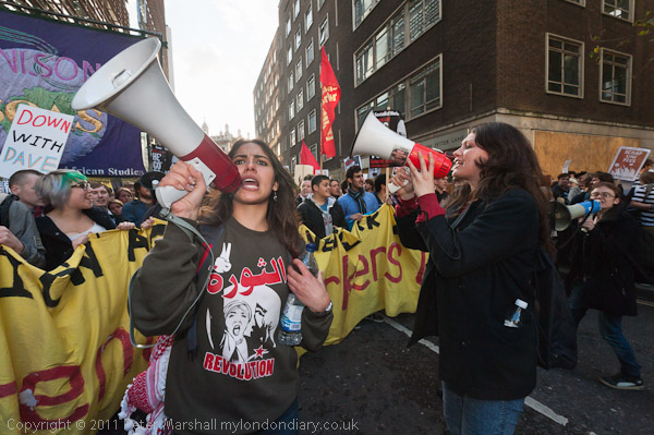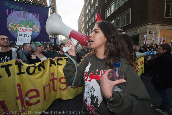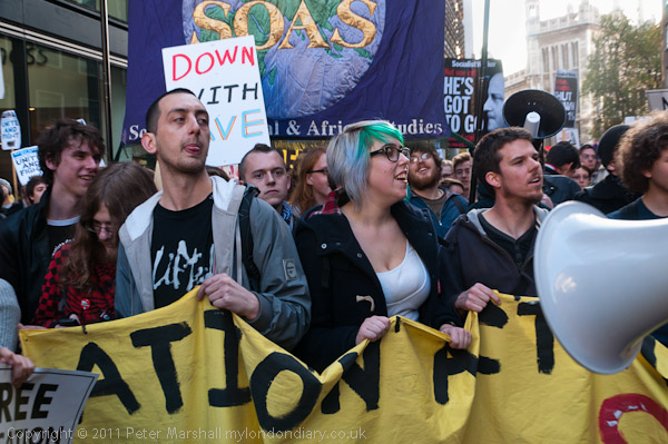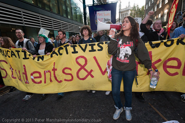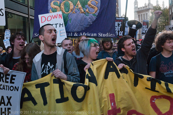 The Education Activist Network banner and some noisy chanting in Fetter Lane