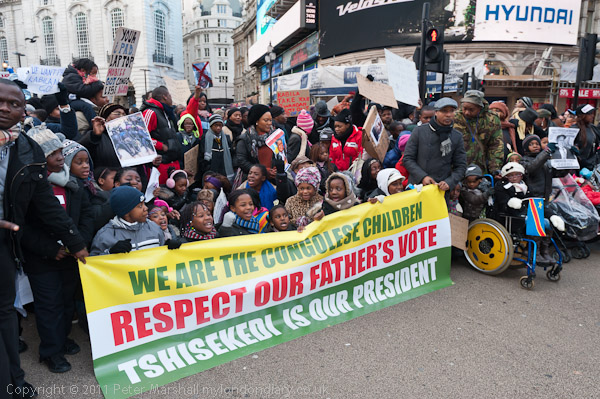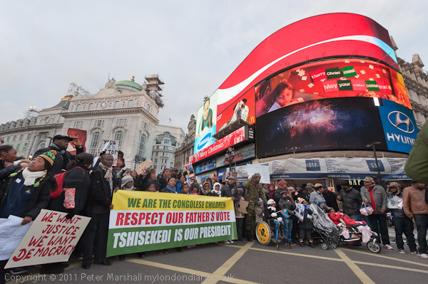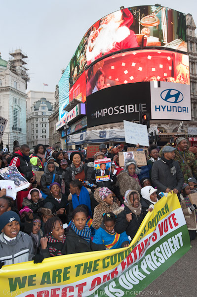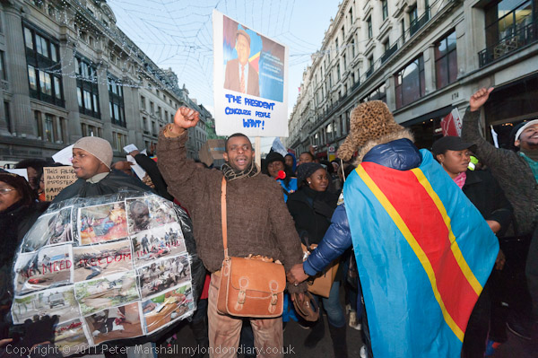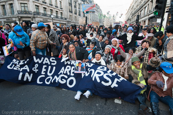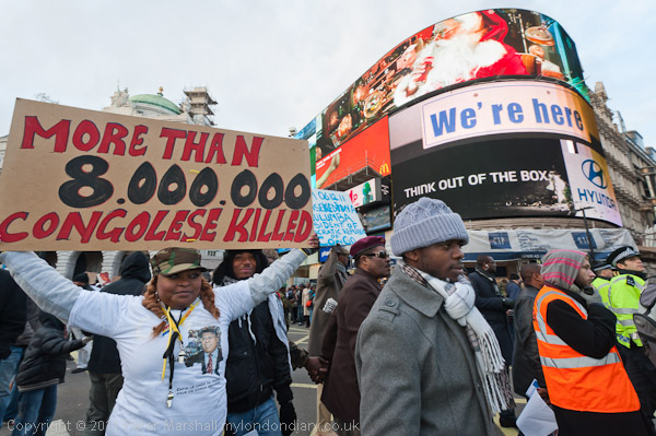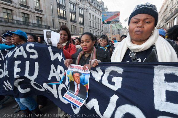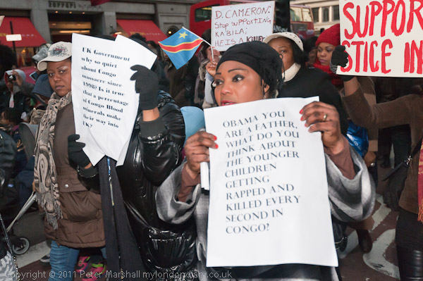 Posters called on the UK and Obama to stop supporting Kabila "He is a Killer"