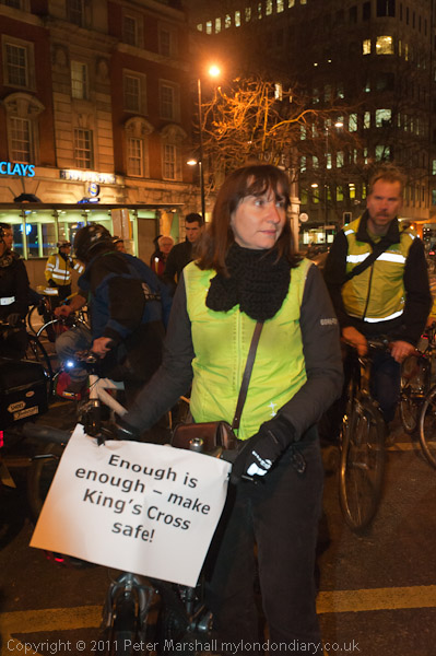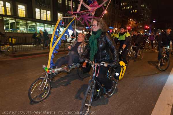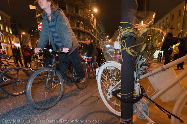 I counted around 150 bikes in the protest and there were around 50 people on foot as well