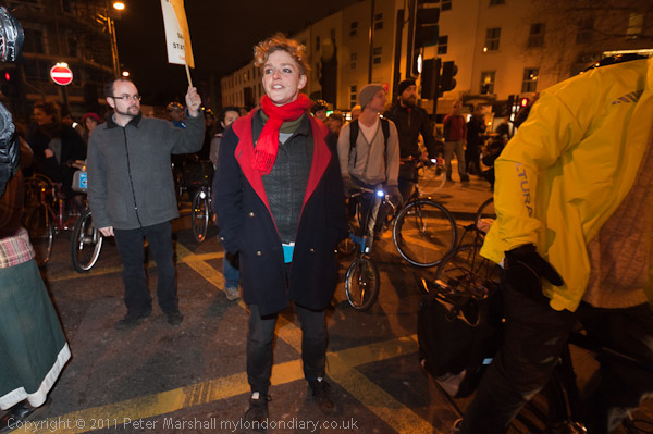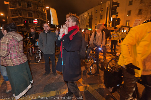 and stops on the box junction, where Tamsin Omond is leading some chanting