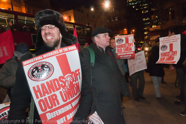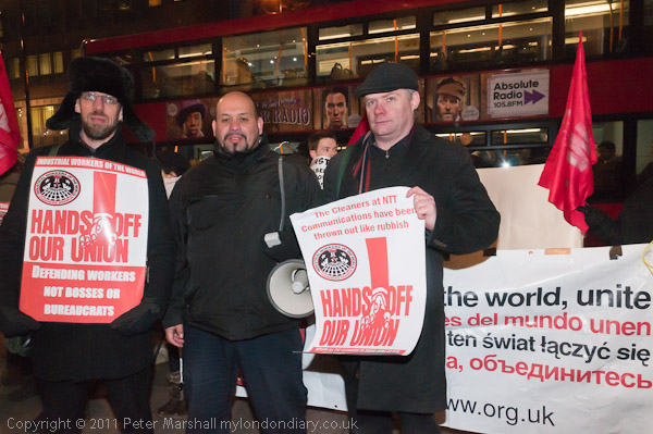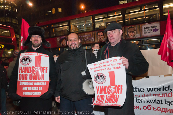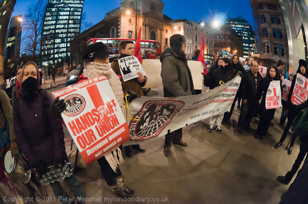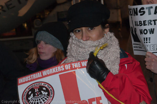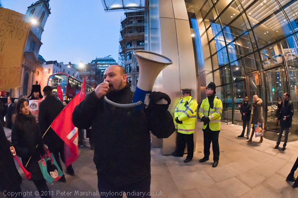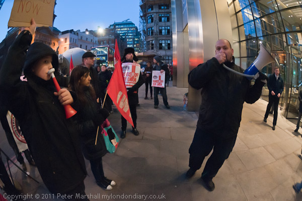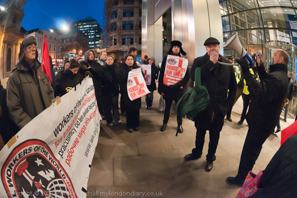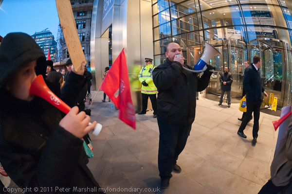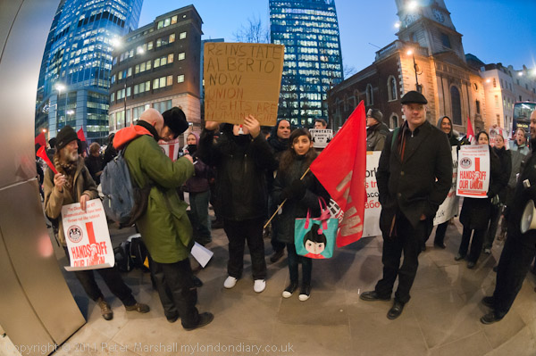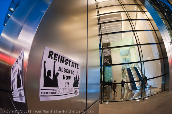 IWW Cleaners Demand 'Reinstate Alberto'Heron Tower, Bishopsgate, London. Friday 10 Feb 2012