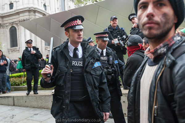 The kettle starts with police wielding batons