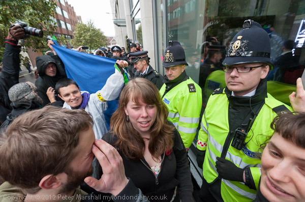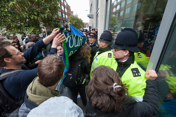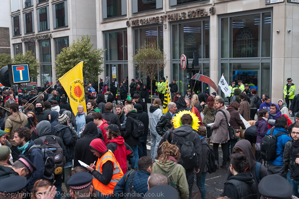 Protesters were kettled outside the hotel where they wanted to protest. It was unclear what purpose if any the kettle