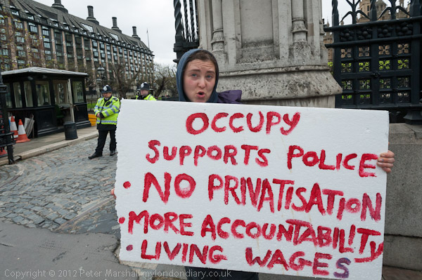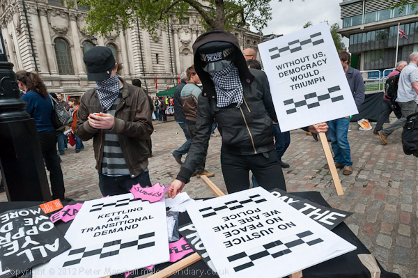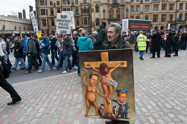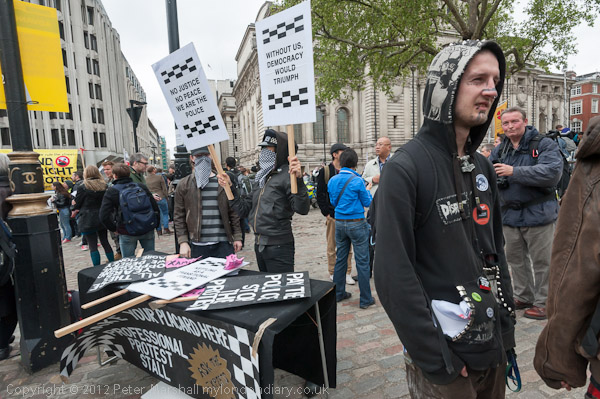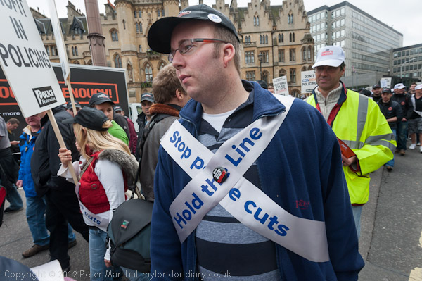 The Defend The Right To Protest group reminded police marchers of Alfie Meadows, Sean Rigg, Ian Tomlinson, Jean Charles de Menezes and others