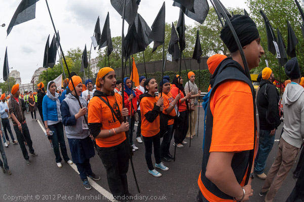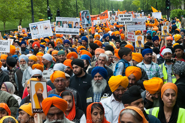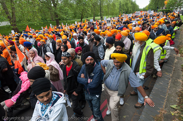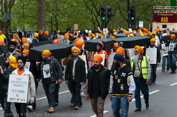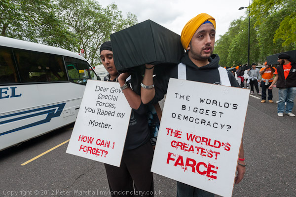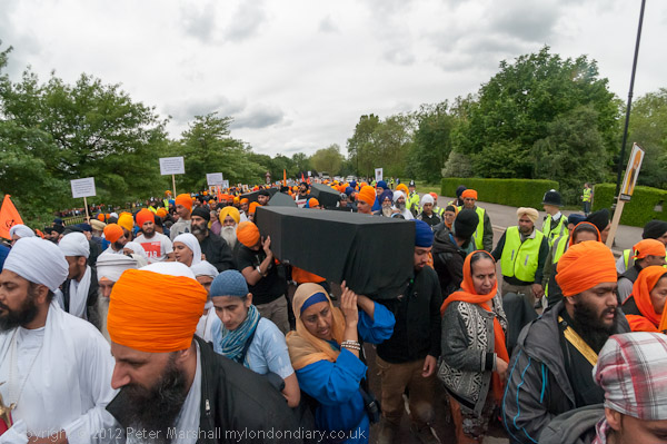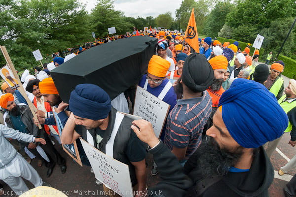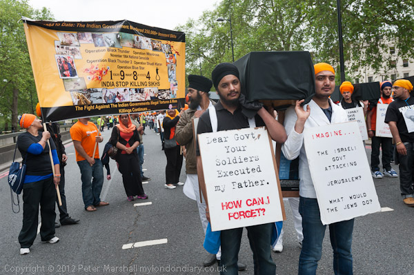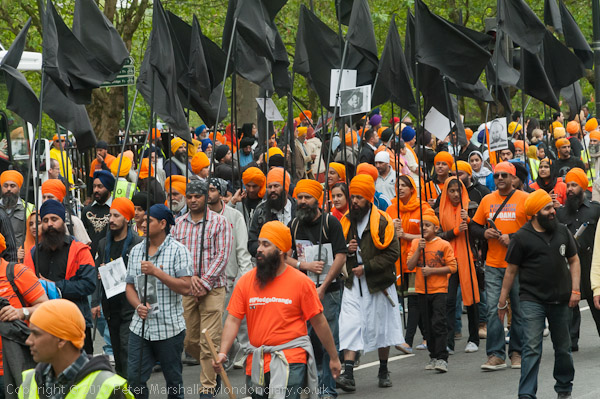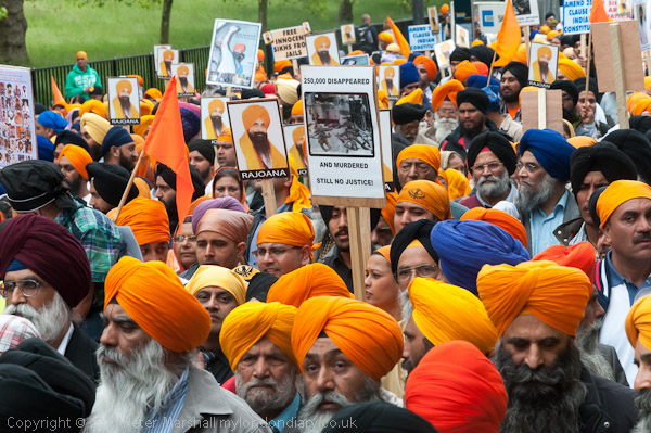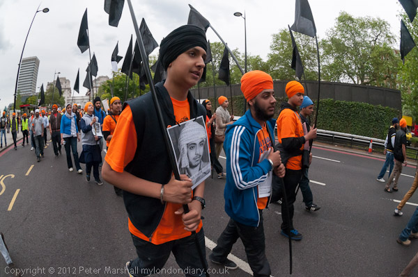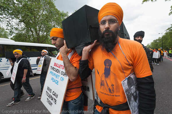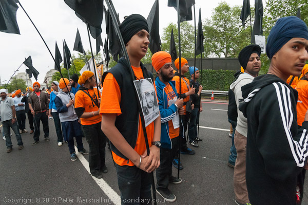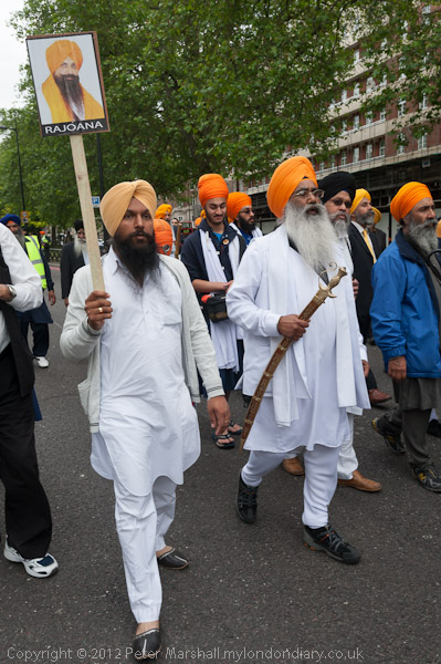 On his shirt is a picture of the Sikh leader the Indian Army stormed the Golden Temple to kill