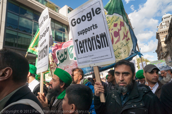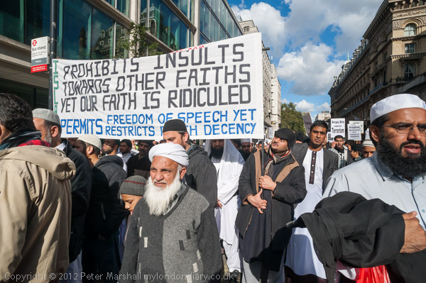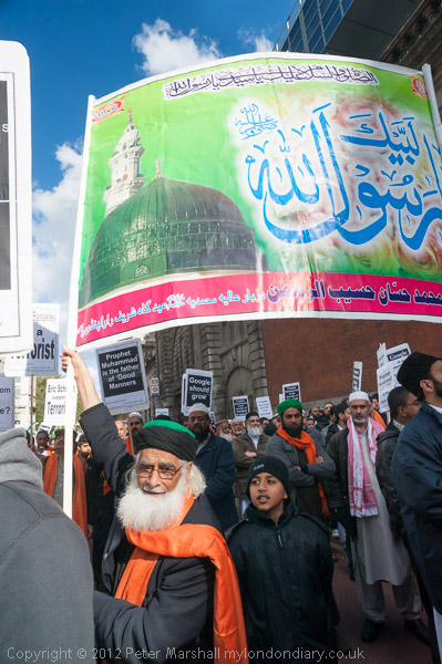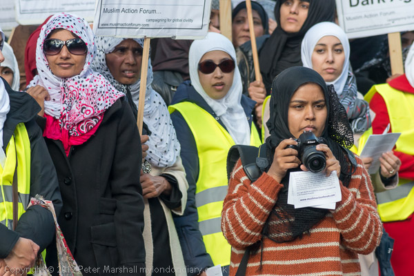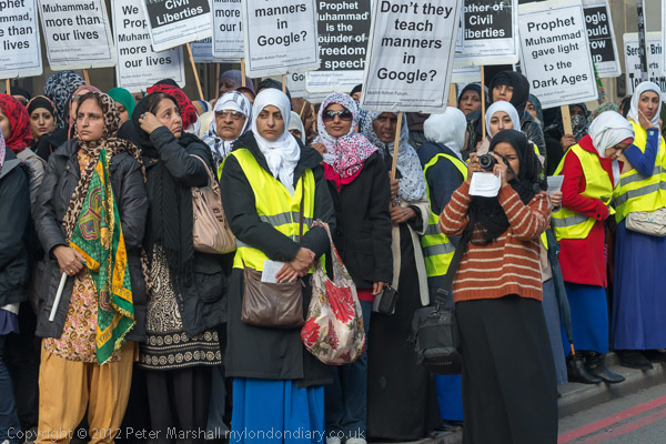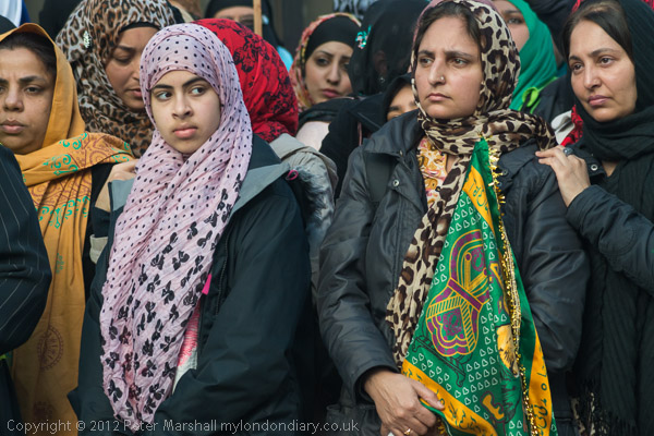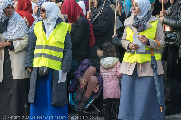 I had thought there were no women at the protest, but then saw this block beyond where the men were saying prayers