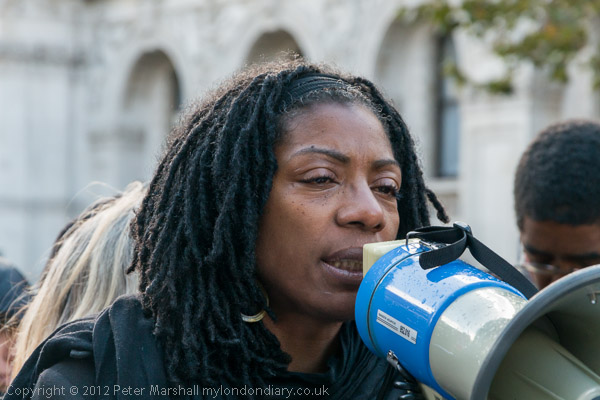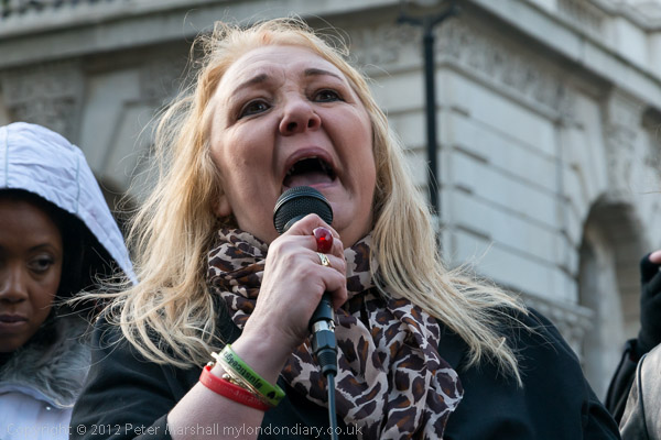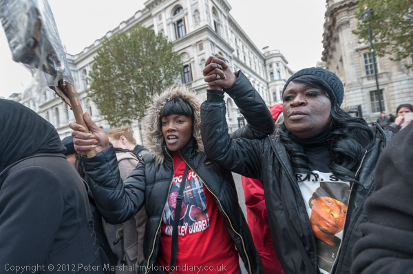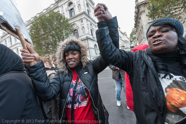 The protesters stopped to hold a rally on the roadway opposite Downing St