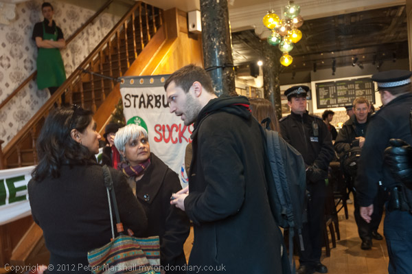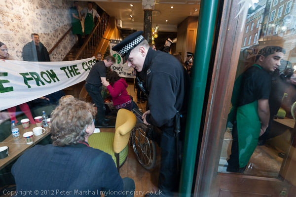 At Vigo St I could only photograph the occupied Starbucks through the windows