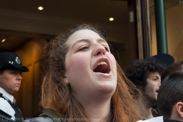 Eventually the protesters came outside after having been told they would be arrested if they stayed