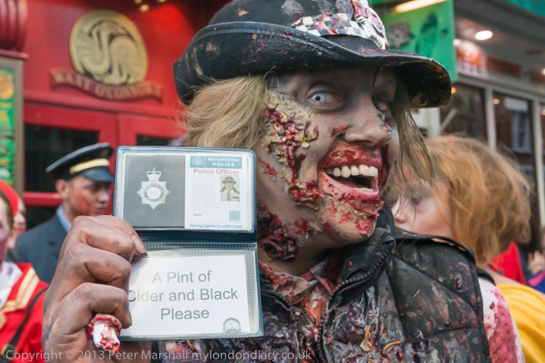 One of the officers shows me her warrant card 'A pint of Cider and Black Please'