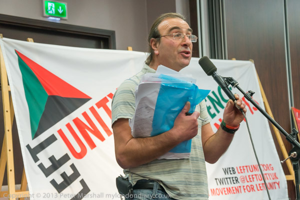 Using these pictures:Members of Left Unity may use up to six of the pictures in this report on the Left Unity Founding Conference on non-commercial personal blogs so long as each is attributed '© 2013 Peter Marshall http://mylondondiary.co.uk' (you may replace the web address with a link if preferred.) A non-commercial blog is one without advertising or sales links and which is not produced as a part of your or someone else's employment. For use on other blogs and web sitesplease contact me (see above) and a fee may be required. ![]() ![]() Ken Loach ![]() ![]() ![]() ![]() ![]() ![]() Countin the vote ![]() Knitting ![]() Pete McLaren |