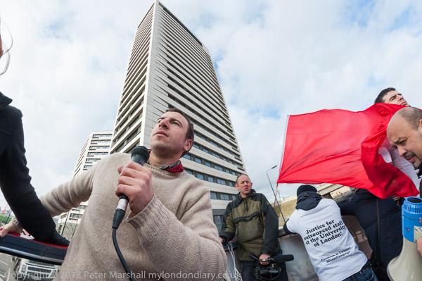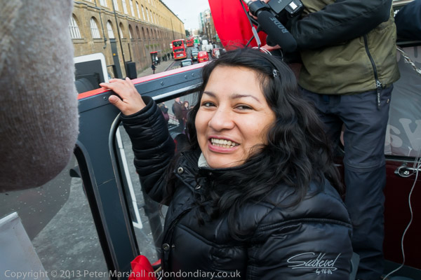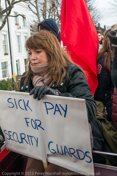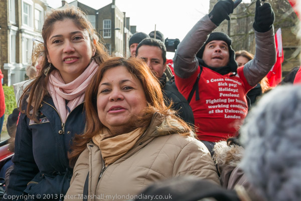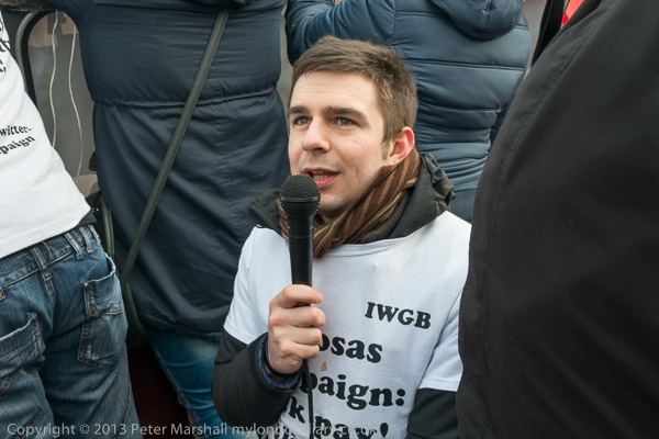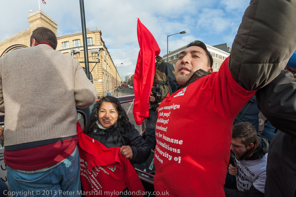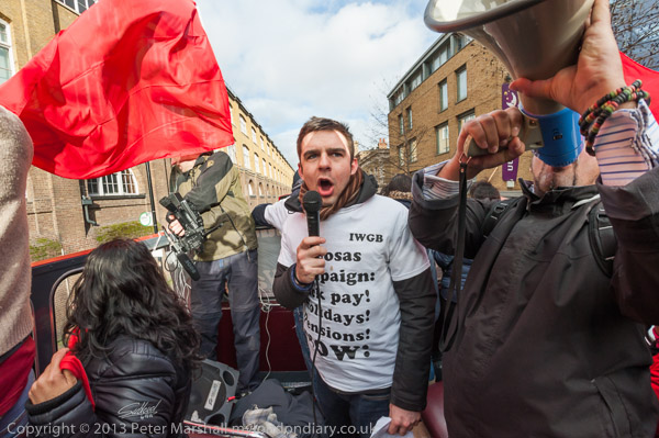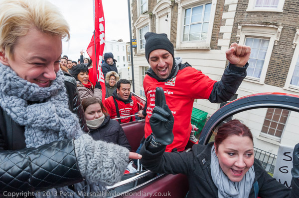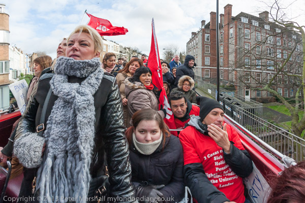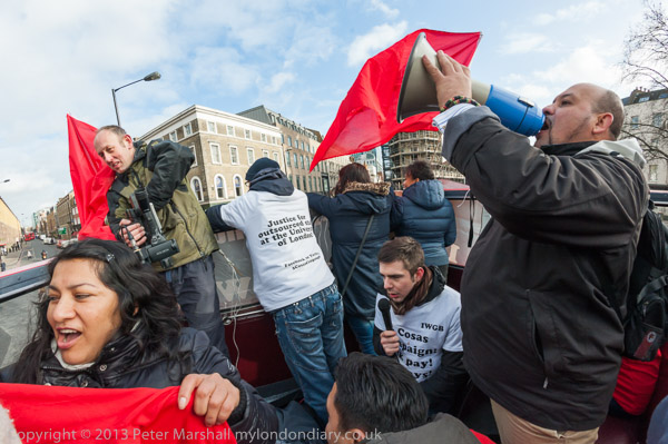 '3 Cosas' Strike IWGB Battle BusSenate House to Parliament Square, London. Tue 28 Jan 2014 |