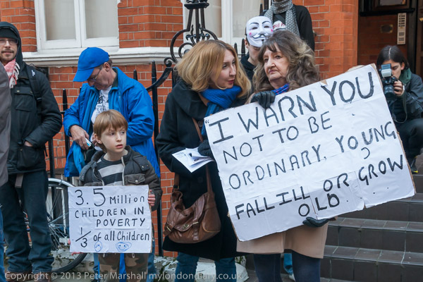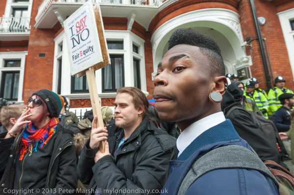 Trafalgar Square & Ecuadorian embassy. Sat 1 Mar 2014