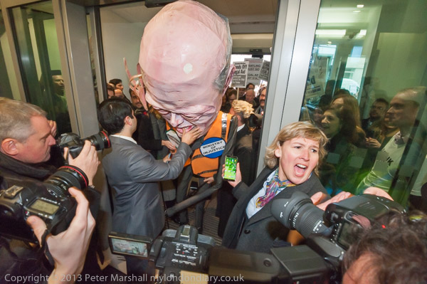 ![]() which we could only do very slowly as there was a large crowd around the door ![]() ![]() ![]() ![]() and on the street outside, ![]() ![]() ![]() The protest ended here, though many people were still standing around when I left |