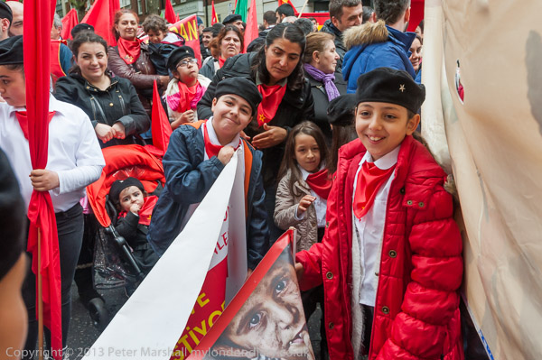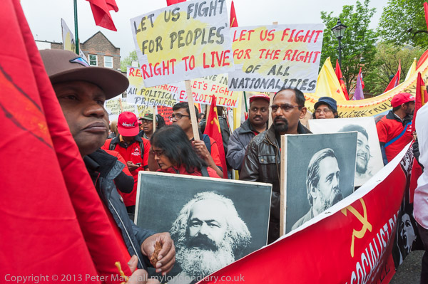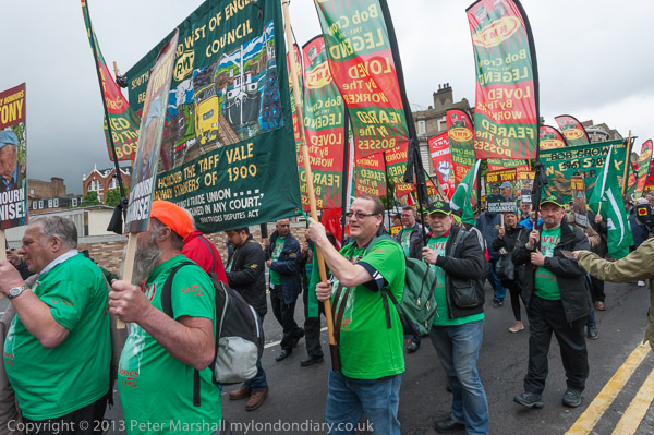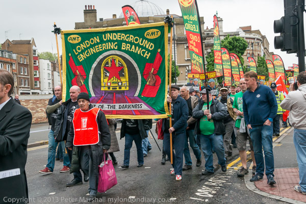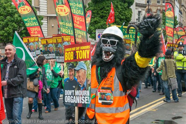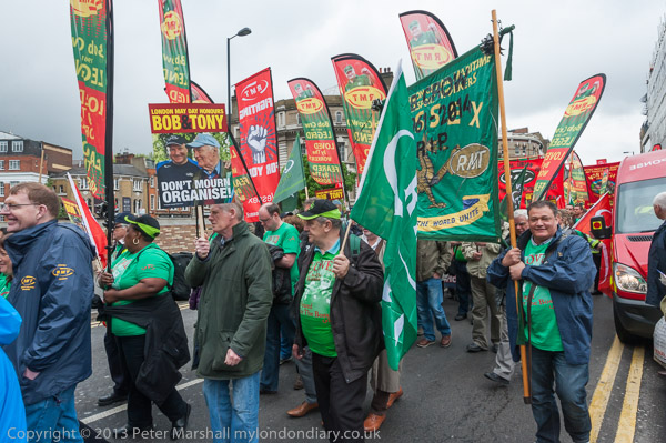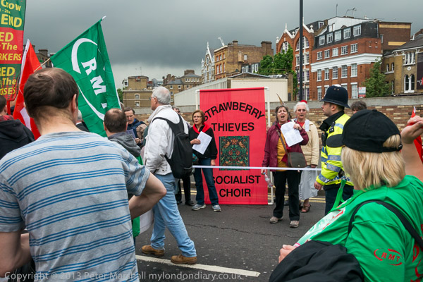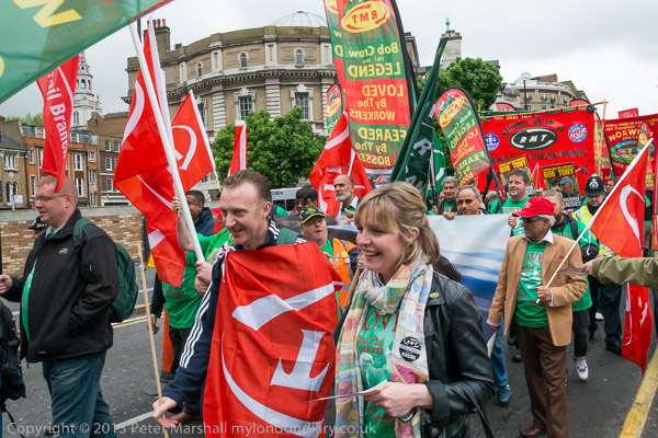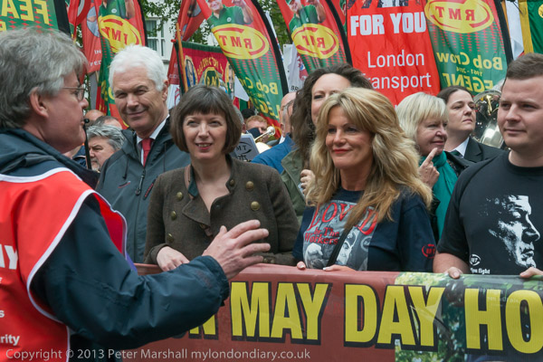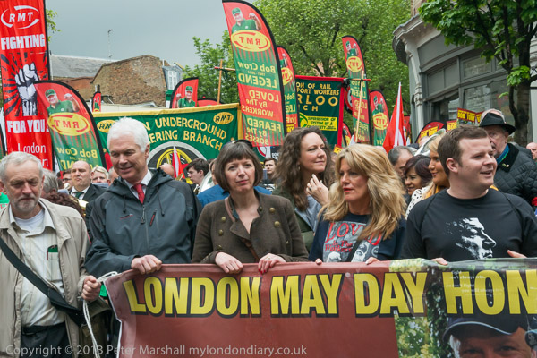 The front of the march with Frances O'Grady and Bob Crow's partner Nicky Hoarau