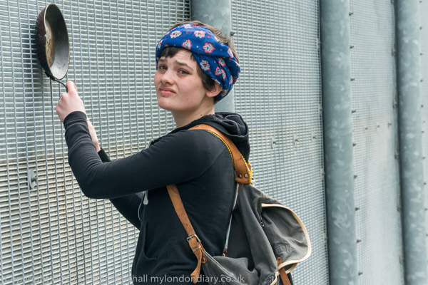 In the corner behind the protesters are the kennels for the airport police dogs, who were apparently disturbed