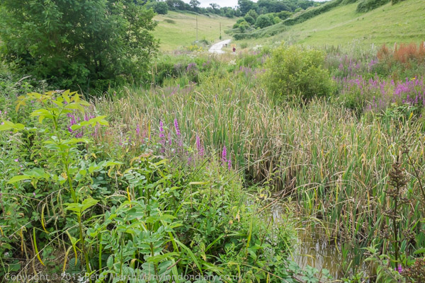 ![]() The line here was on an embankment ![]() ![]() With a bridge over a farm track ![]() The road went through between the farm buildings ![]() ![]() ![]() and soon we could see the viaduct. There is a footpath marked direct to it, but it seemed to be overgrown and part underwater ![]() So we continued along the road, taking a short cut across by a pond where the road goes on a loop ![]() Soon we got a better view of the Cannington Viaduct ![]() Quite an impressive structure |