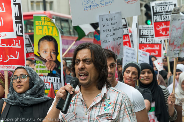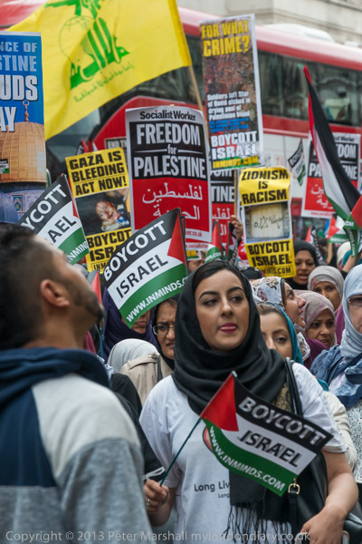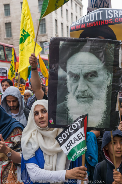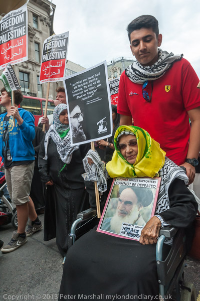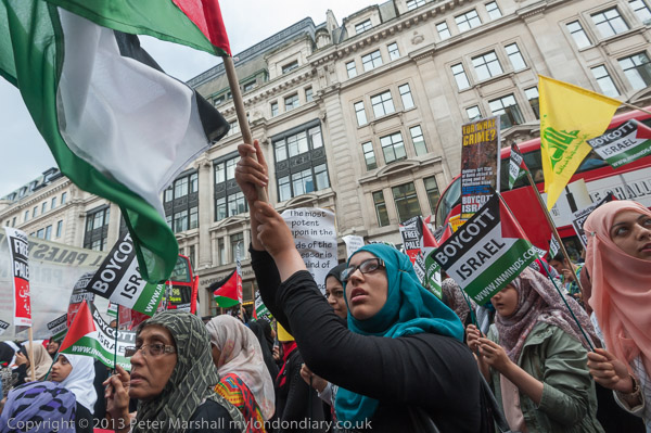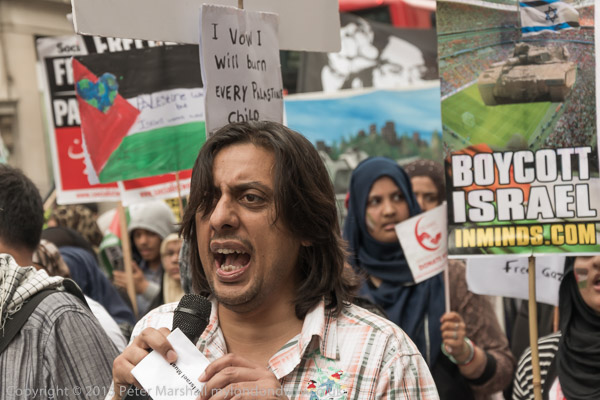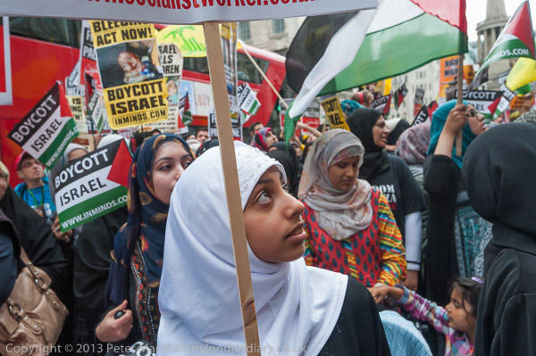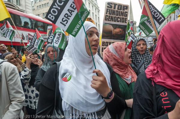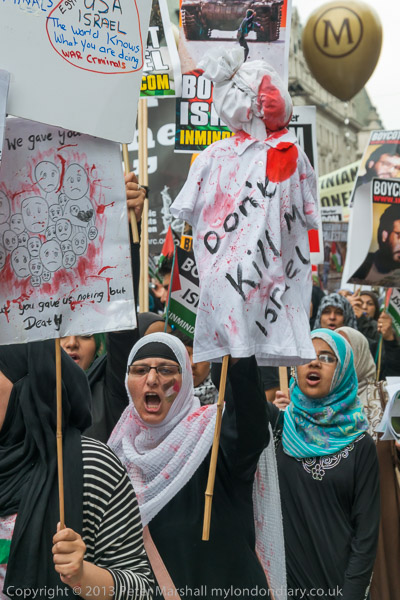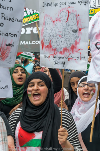 One woman had a placard with an an alleged quotation from Ariel Sharon about burning Palestinian children