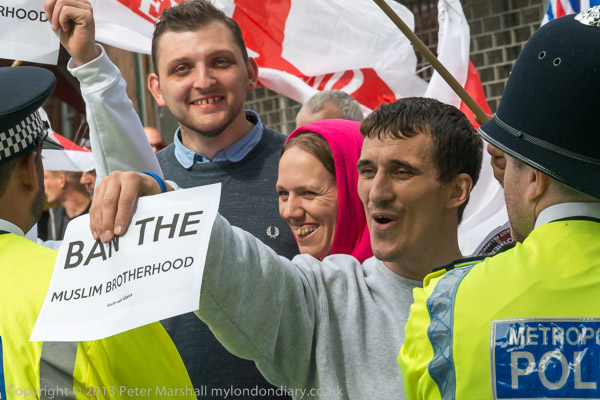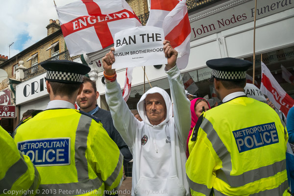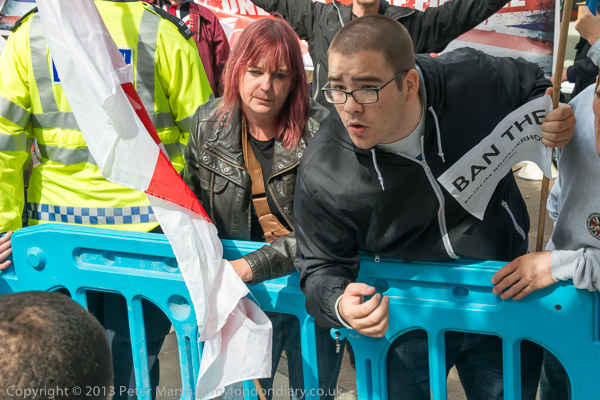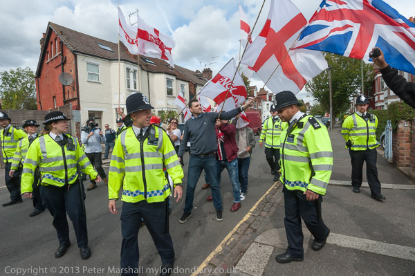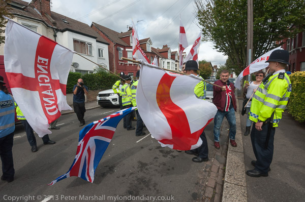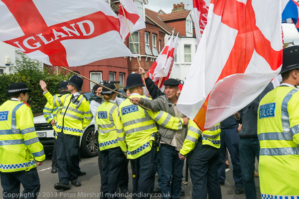 Eventually police reacted to the violent attacks with flags - by forcing photographers further back!