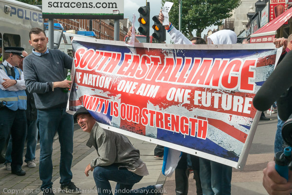 Police held back the SEA protesters but didn't stop them using the flags as weapons