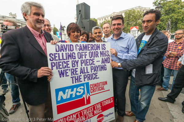 ![]() ![]() 4 Labour MPs and a London Assembly member hold 'Five Key Pledges for the NHS' from the People's March ![]() ![]() 300 milers come up to get their medias - with a pound coin ![]() ![]() ![]() ![]() ![]() Clive Efford MP, Rehana Azam, Sadiq Khan MP, Andy Burnham MP and Dr Onkar Sahota AM Other Labour MPs behind them include Andy Slaughter |