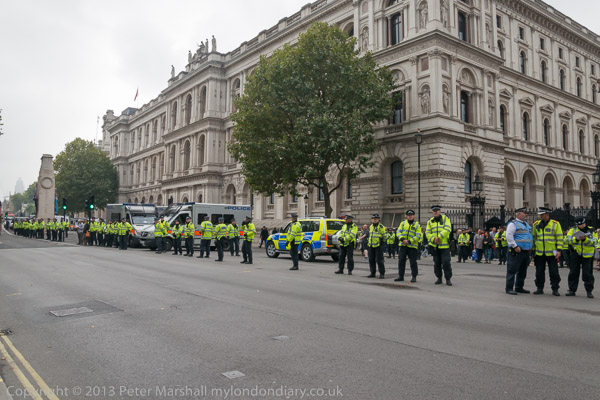 Downing St & Trafalgar Square, London. Sat 20 Sep 2014