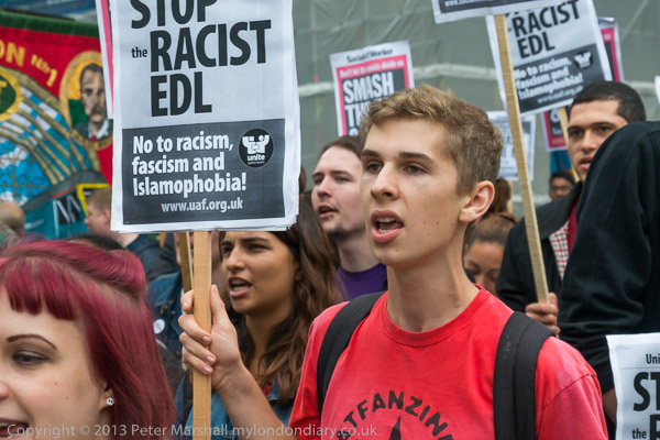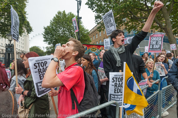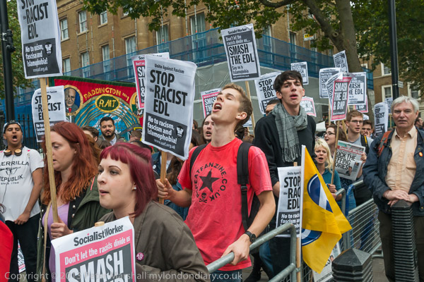 Back at the counter-demonstration there was no antagonism towards photographers, not attempt to stop the press working