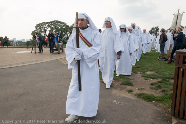 Four druids come from North, East, South and West to the centre to give a blessing of peace to the four corners of the world