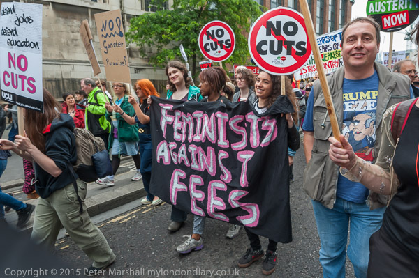 RMT - John Reid, London Transport member on the RMT Council of Executives in 'Cuts KILL' t-shirt - Passengers Before Profit banner-