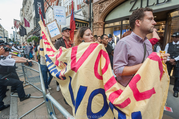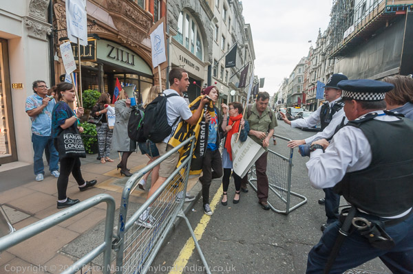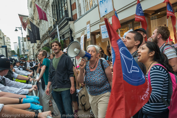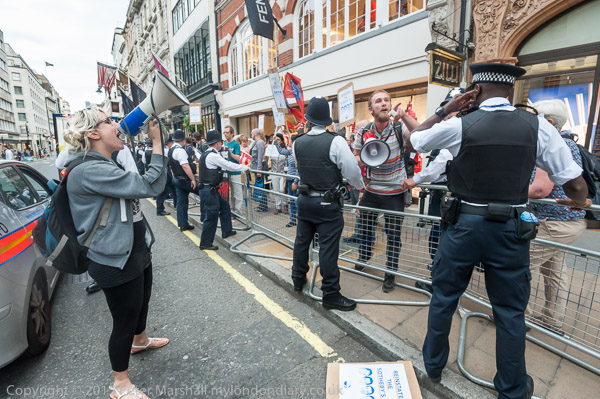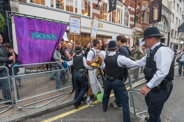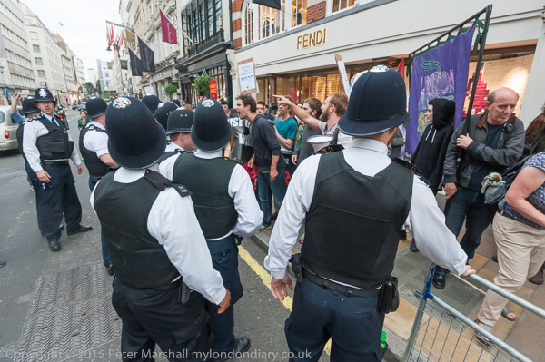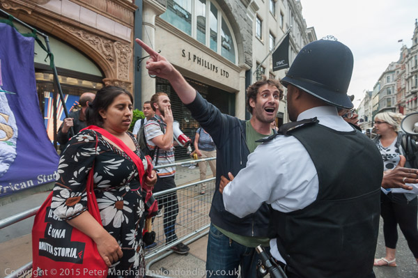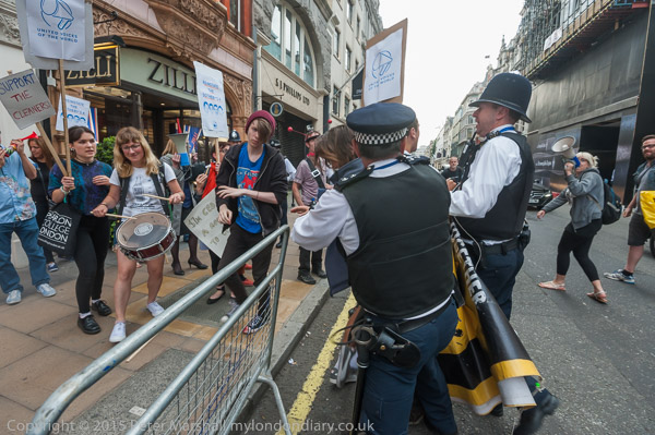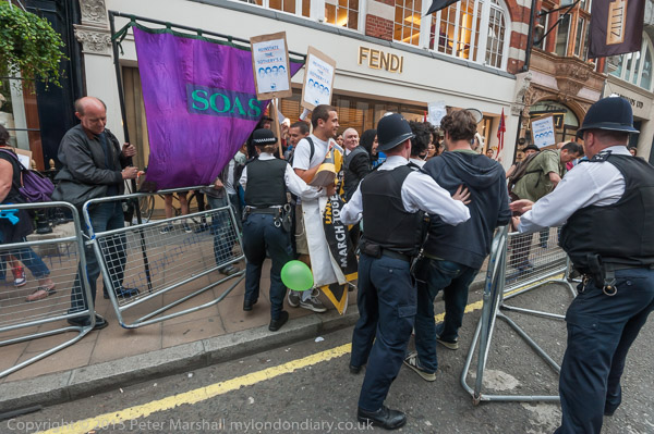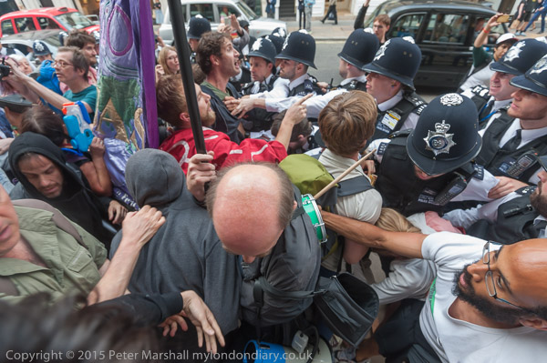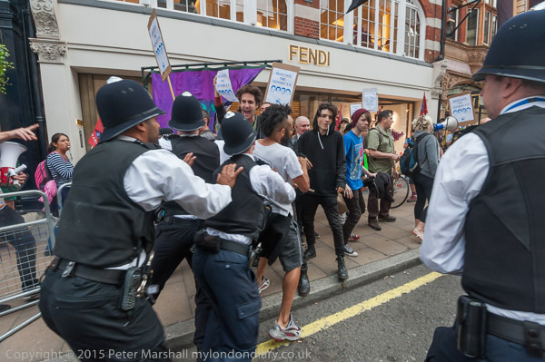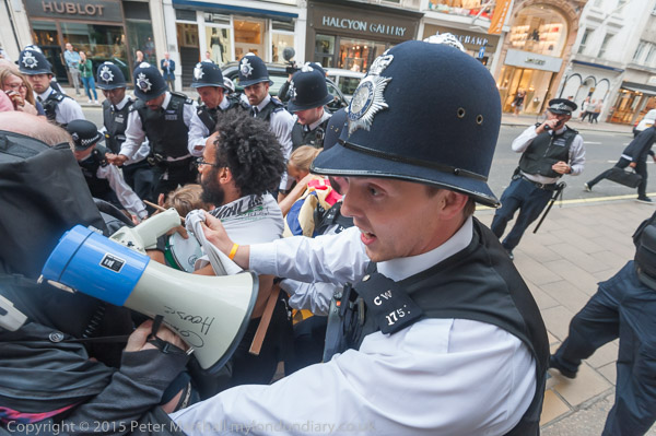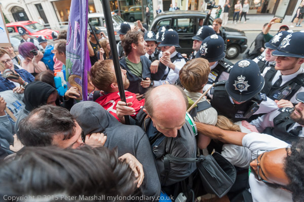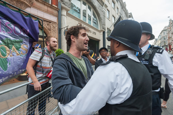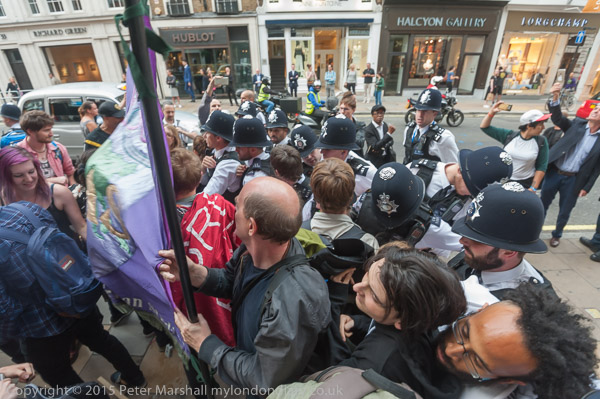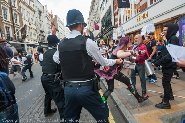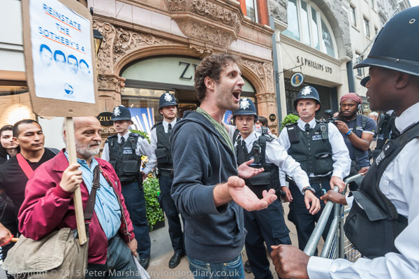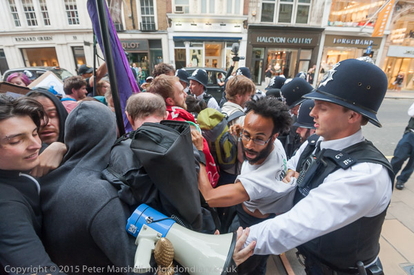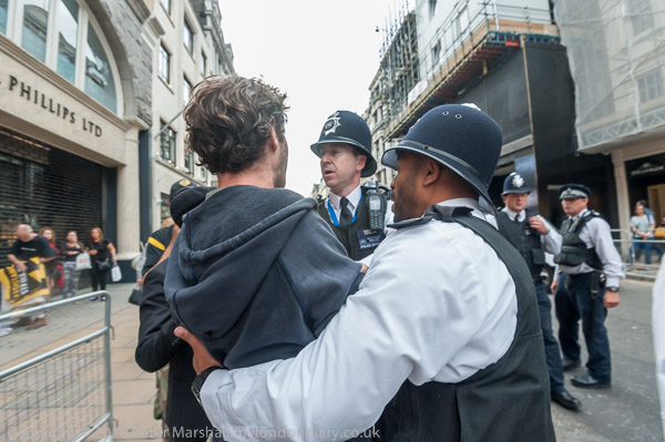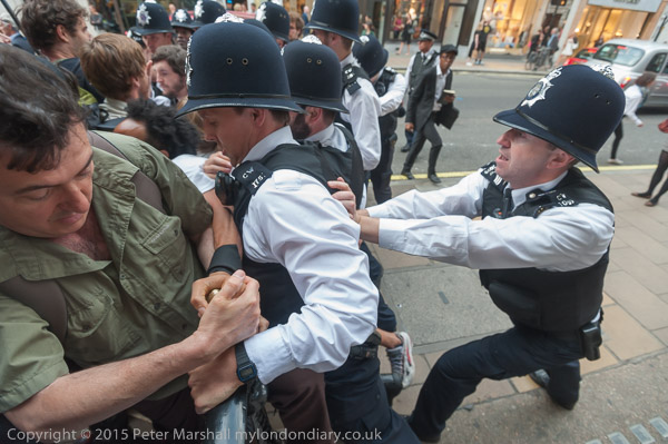 Police restrain Petross Elia who is complaining that the protesters are not being allowed to protest