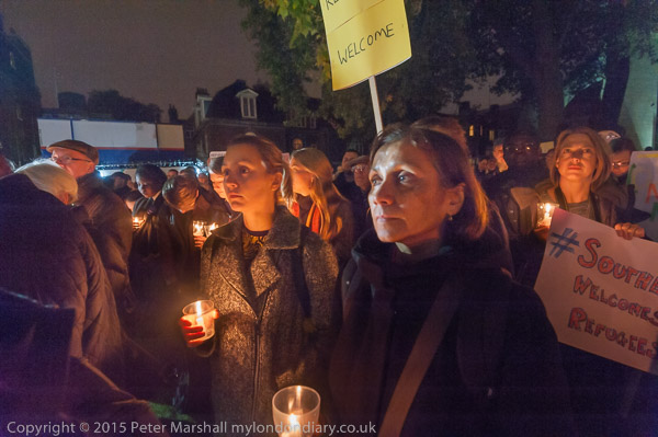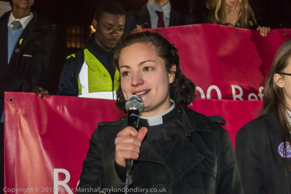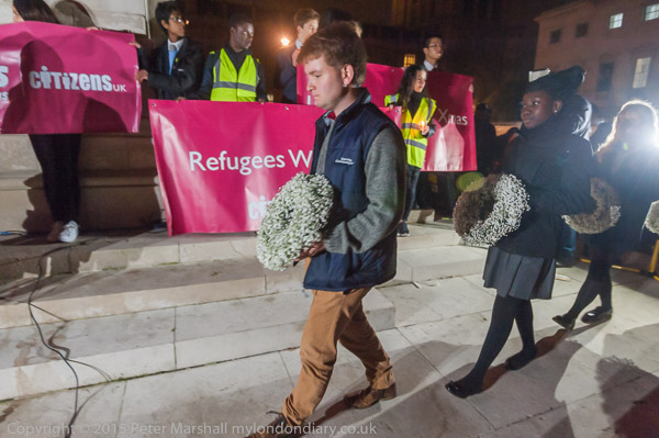by Citizens UK outside Parliament urging Cameron to do more on the Syrian refugee crisis and resettle 10,000 a year here,