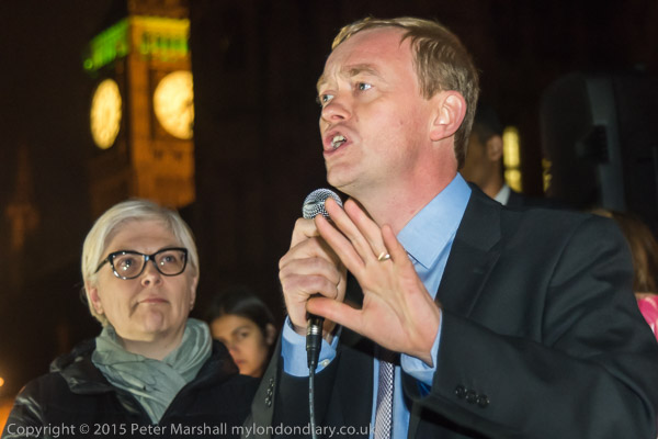 Liberal Democrat leader Tim Farron, MP for Westmorland and Lonsdale speaks at the vigil