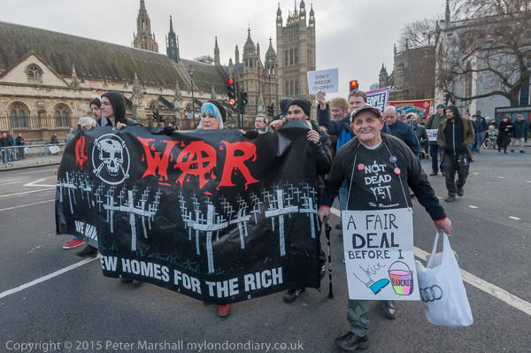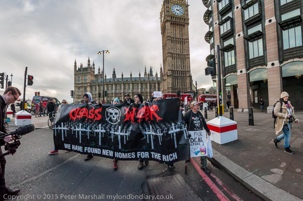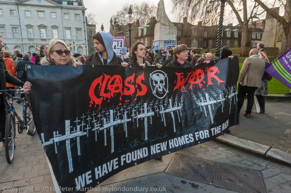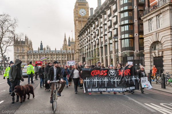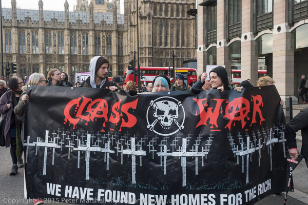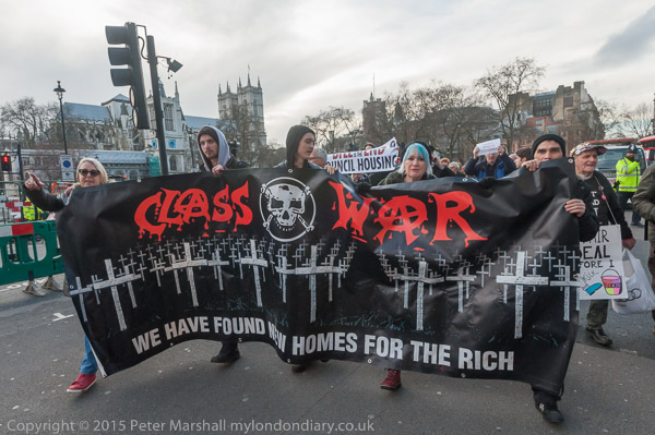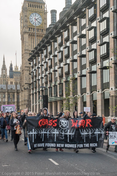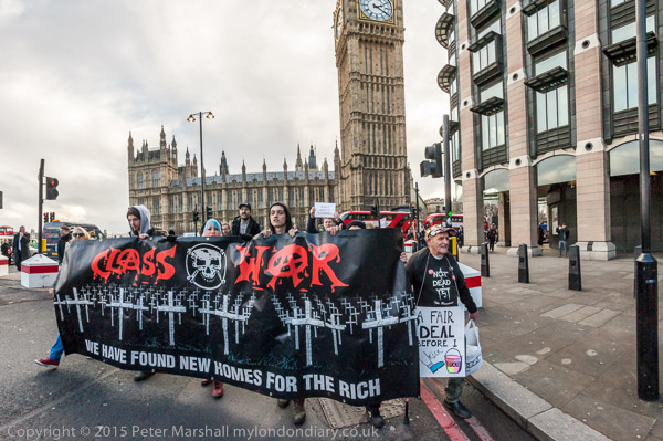 and the march set off with Terry walking with the Class War banner, ignoring police requests to keep on the pavement